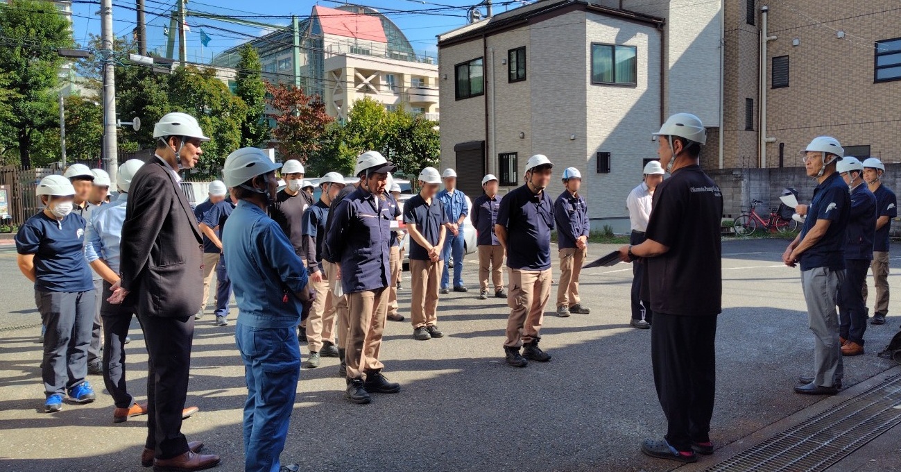2025年10月17日(金)午後13時、東京都で震度5強の地震が発生したと想定し、社内避難訓練を実施いたしました。事前に関係者で打ち合わせを行い、当日は各自が役割分担に沿って迅速に行動。各部の担当者が点呼を取り、防災事務局の神山取締役・伊藤取締役を経て、岡本社長へ社員全員の安否を報告しました。その後はグループに分かれて防災備品の稼働状況を確認いたしました。