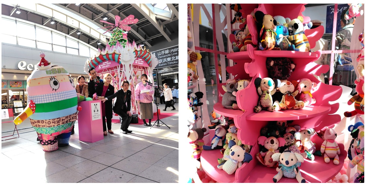 JR日暮里駅にて「フェリシモ ハッピートイズプロジェクト」のオープニングセレモニーが開催されました。このプロジェクトは阪神・淡路大震災をきっかけに、1997年から始まった活動です。手づくりのぬいぐるみを通じて、世界中の子どもたちに笑顔を届ける、心温まる社会貢献活動です。